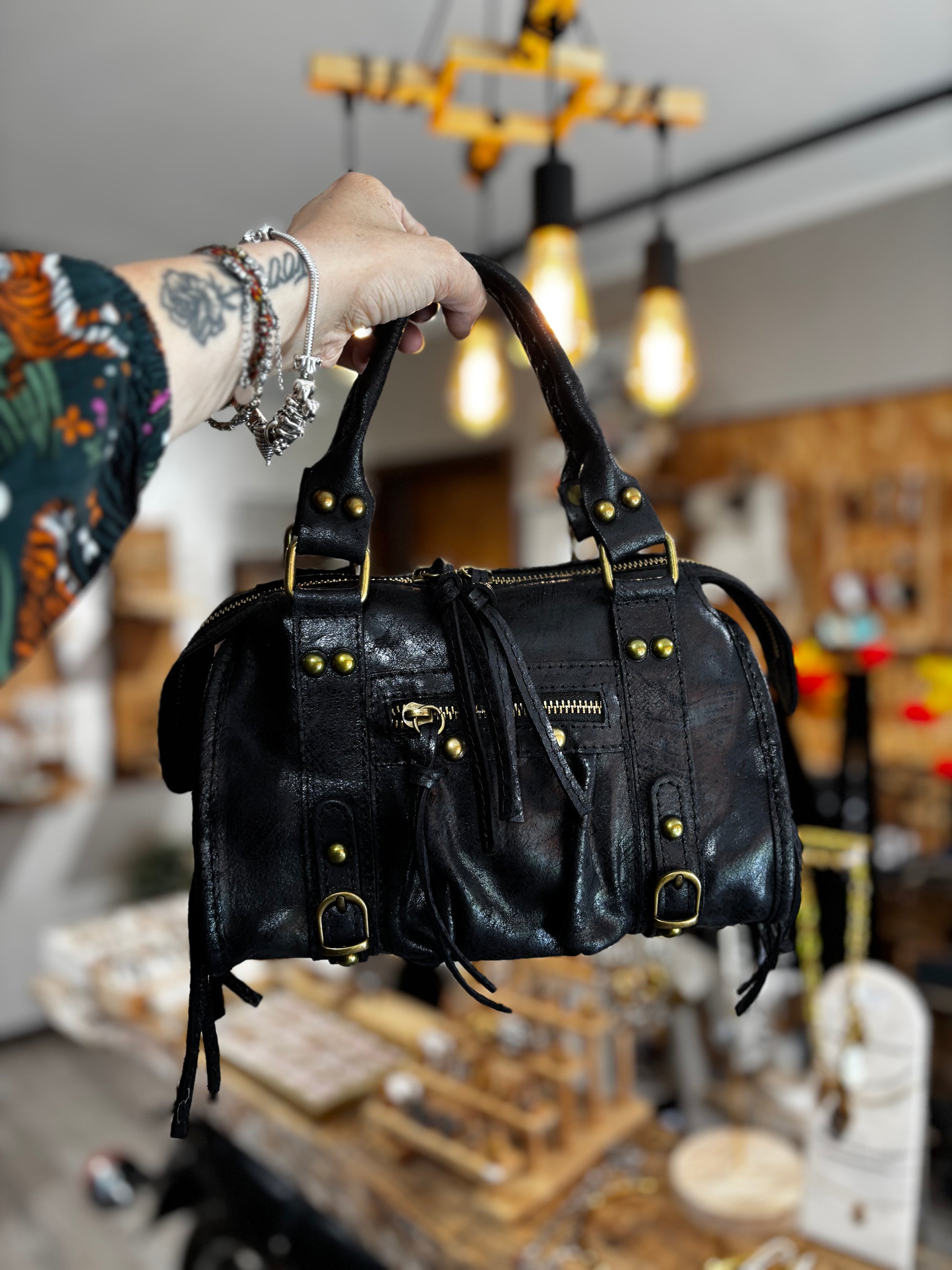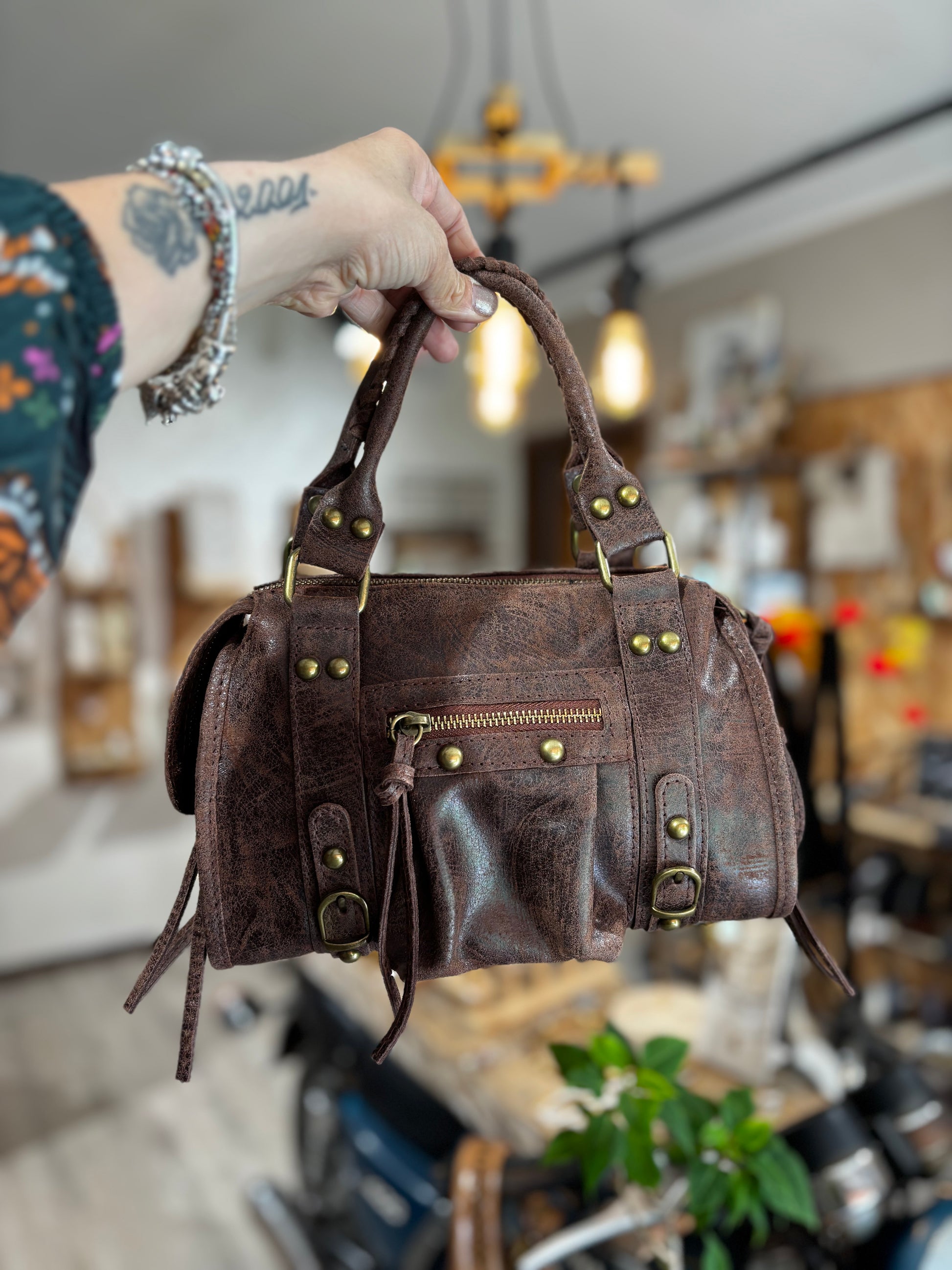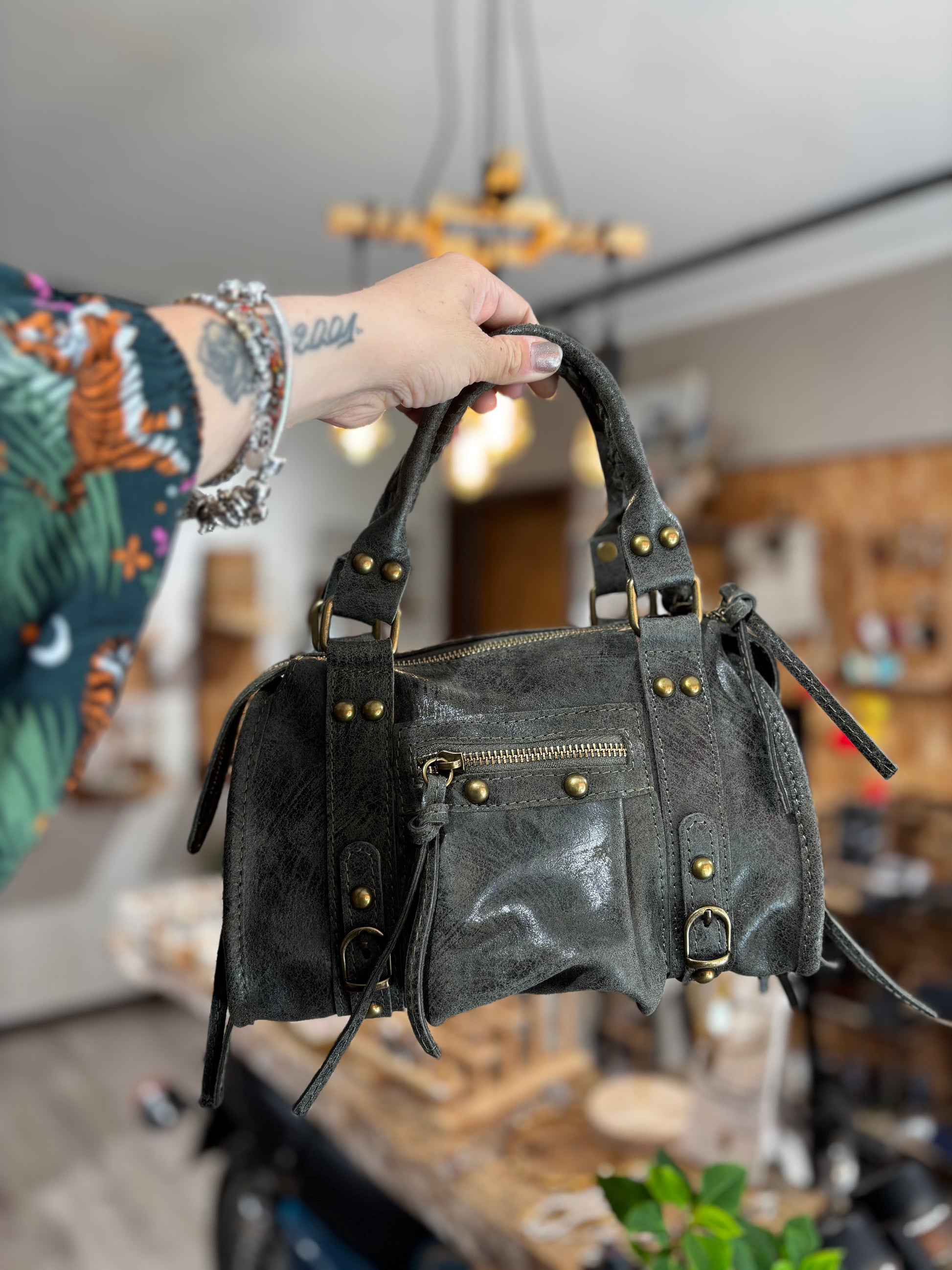 Borsa in VERA PELLE, spalmata.
