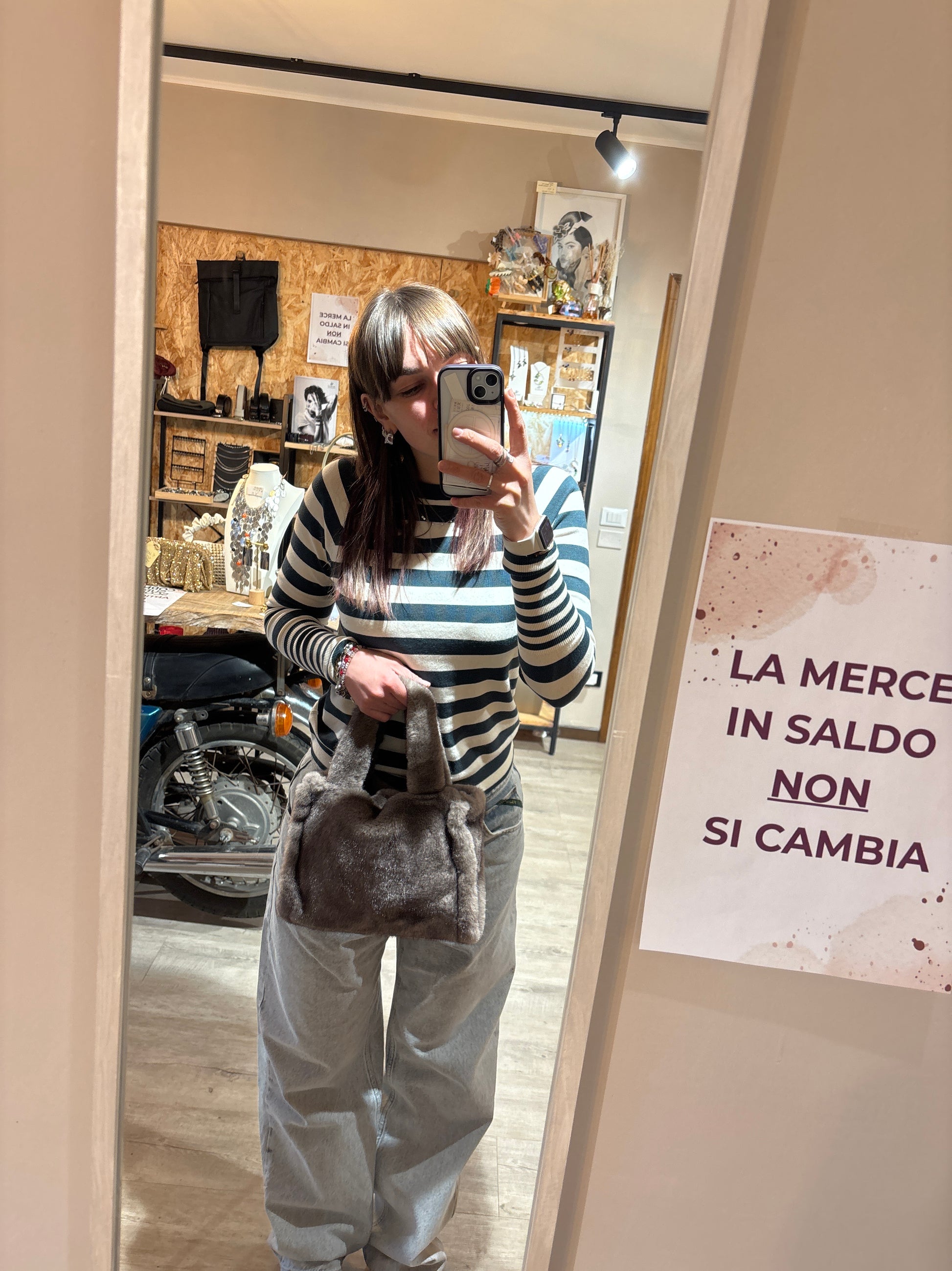 Borsa in simil pelliccia, con manici.