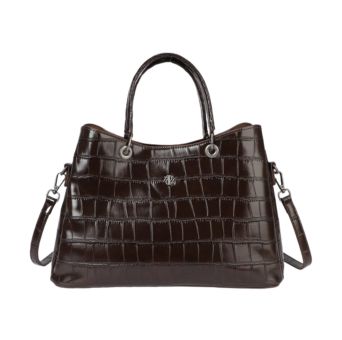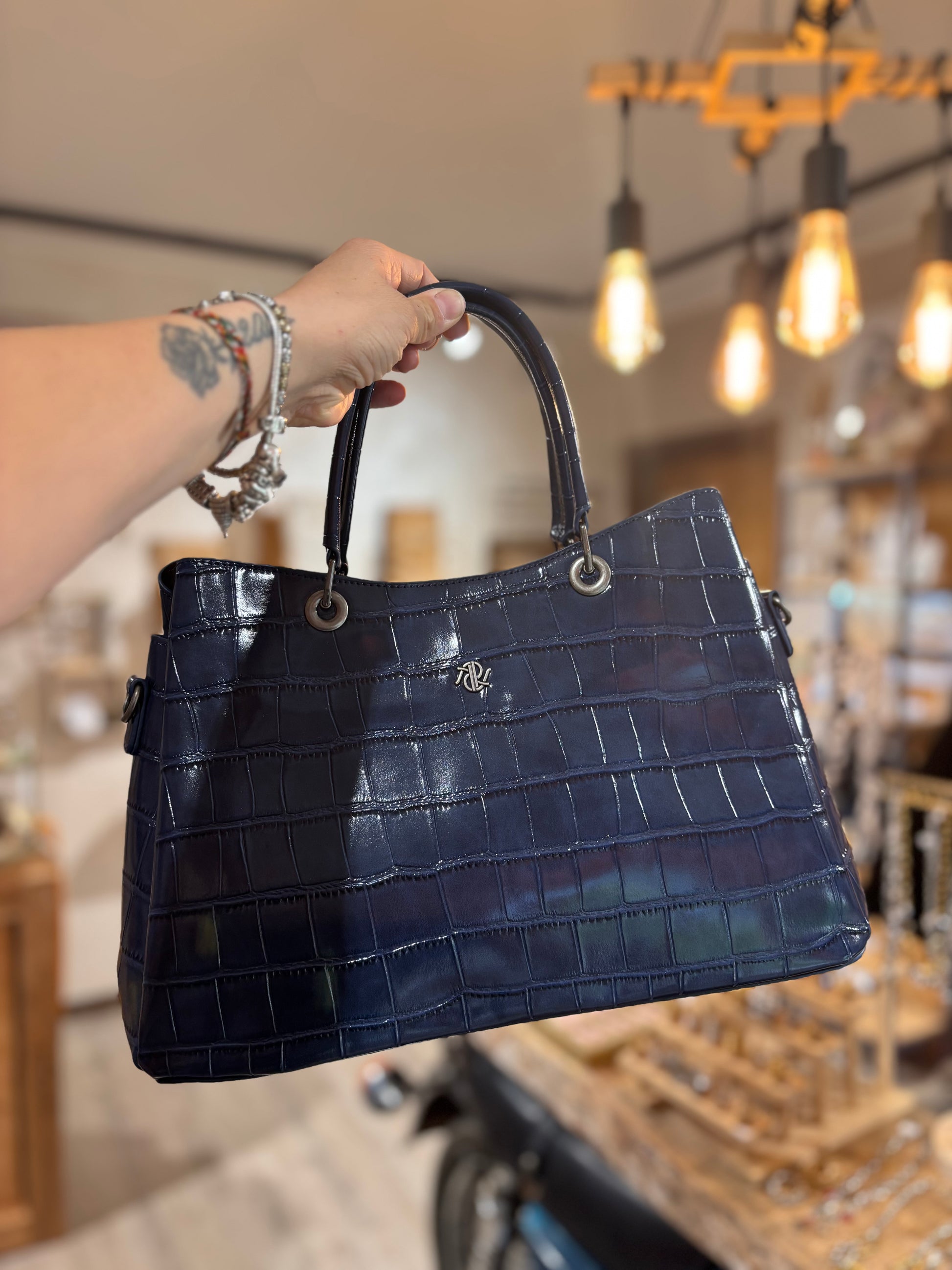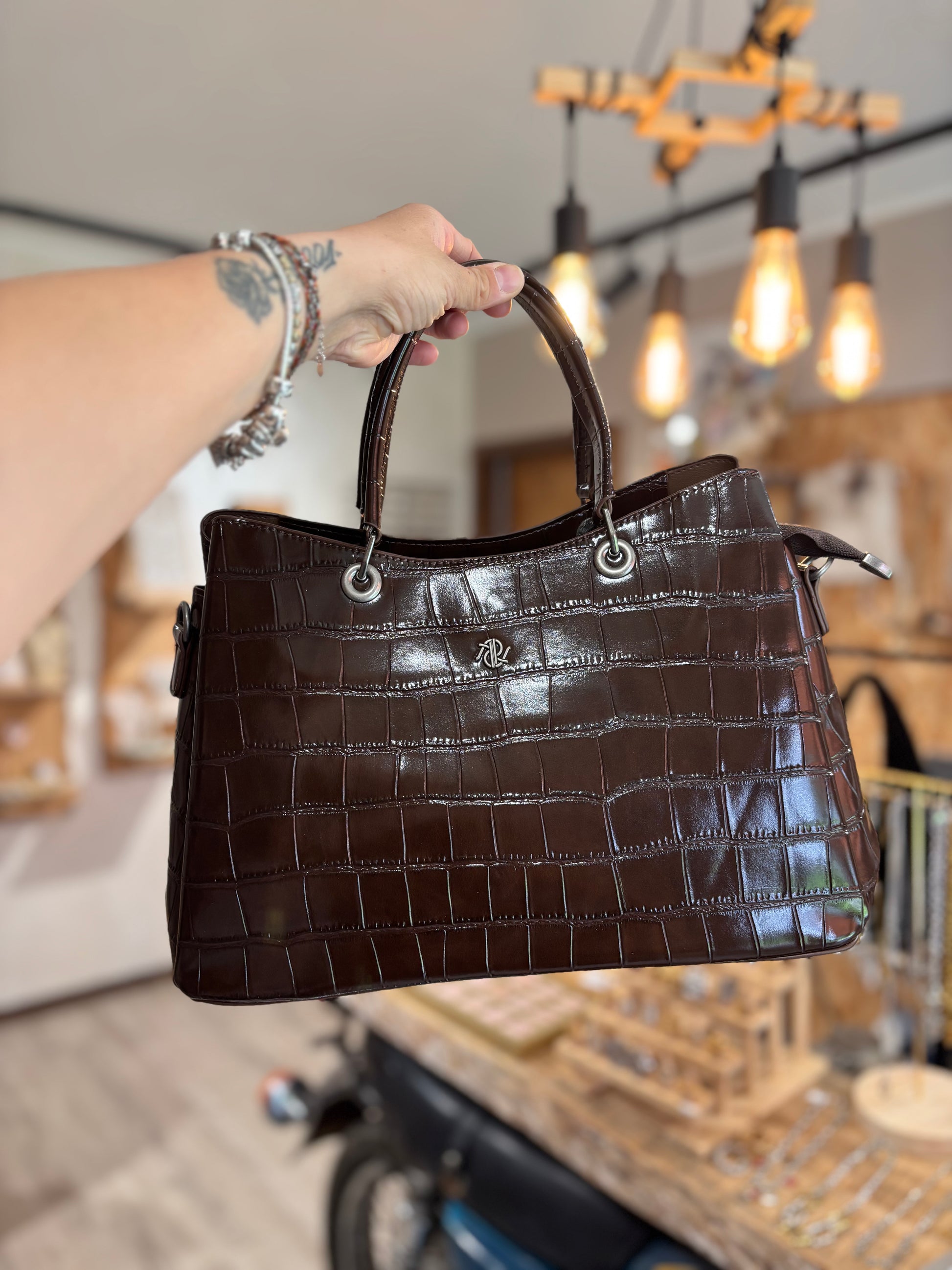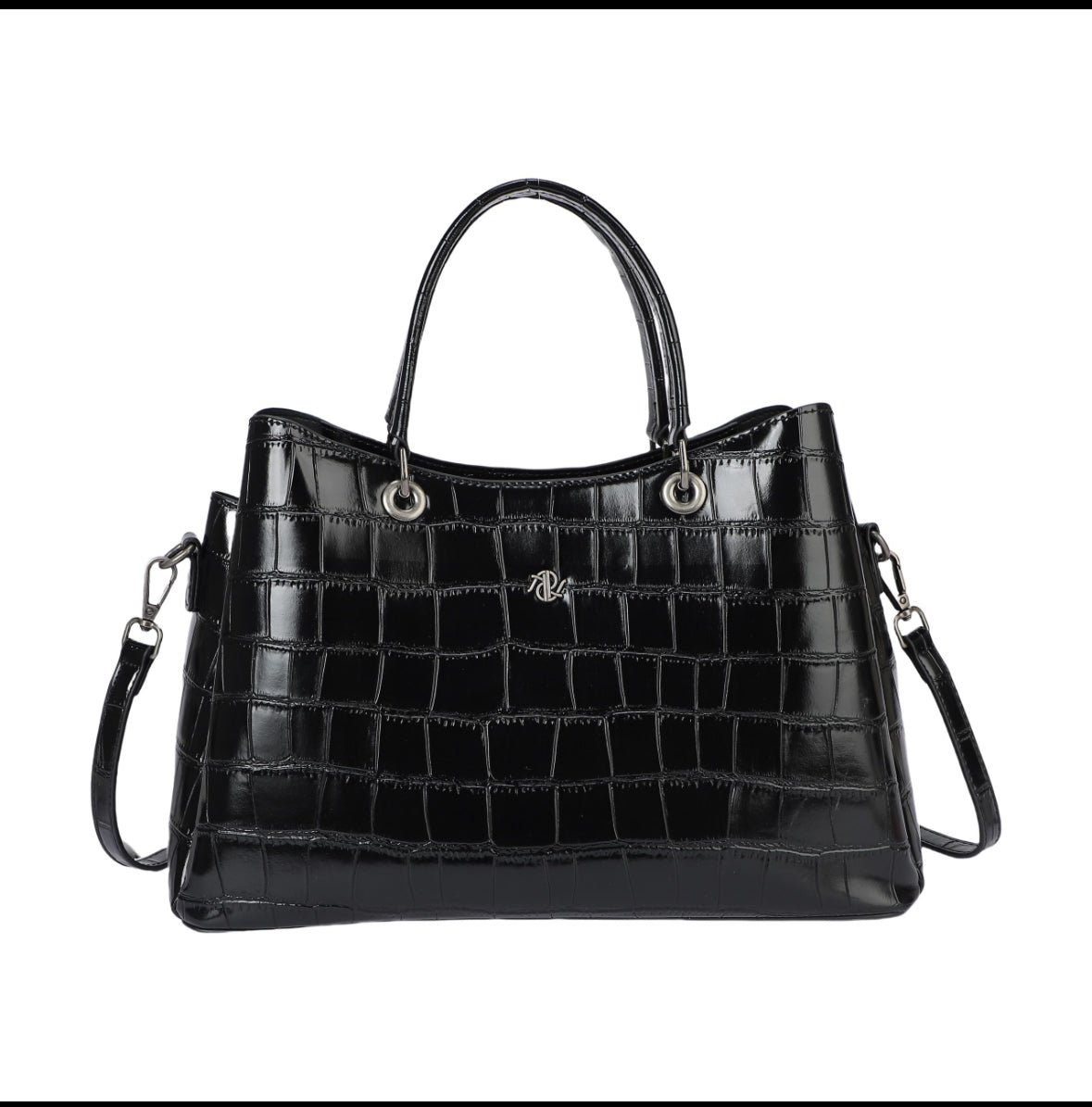 Borsa in similpelle, effetto coccodrillo. Lucido.